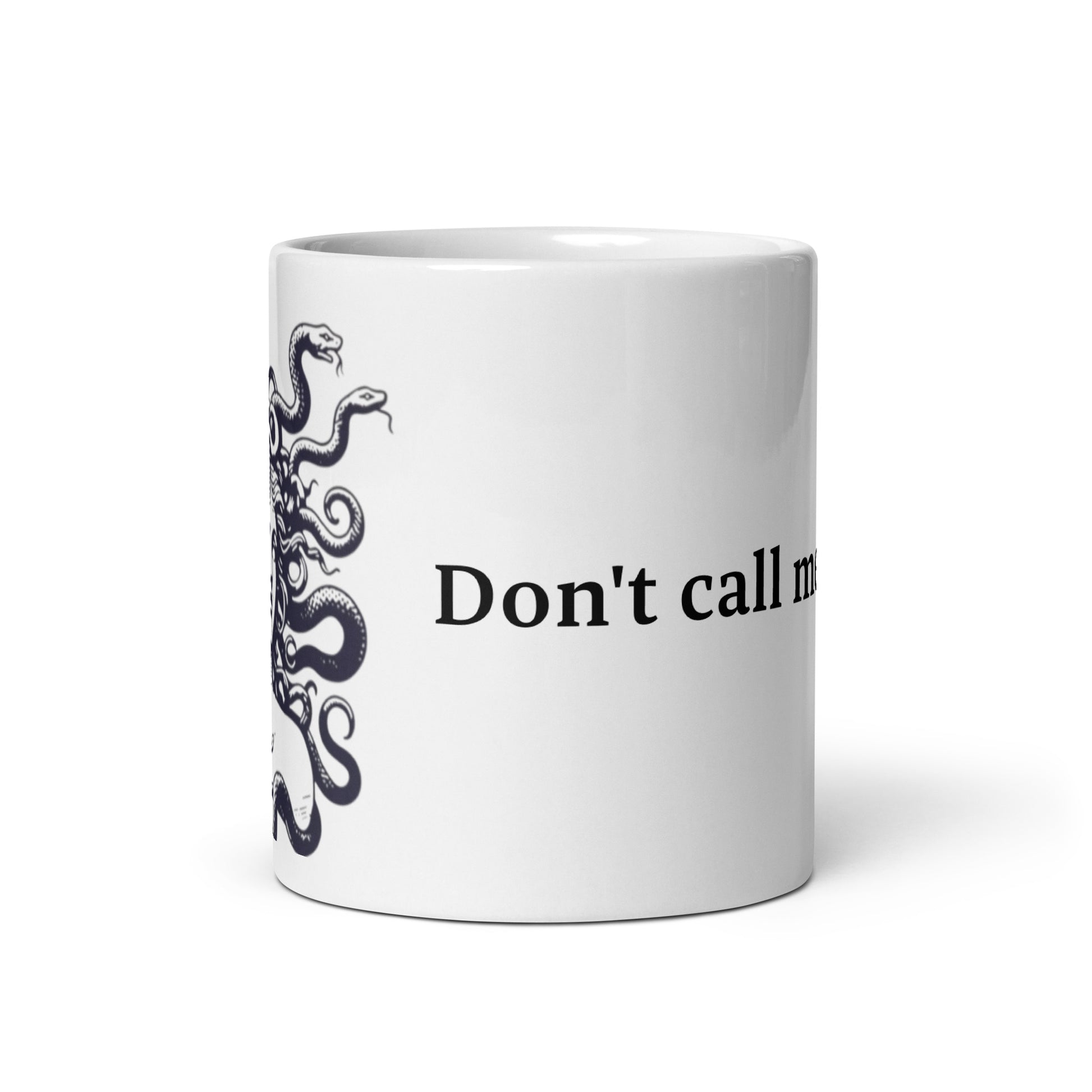 Mythic chic with a stone-cold stare. A ceramic mug featuring a gloriously unblinking Medusa with the immortal warning: “Don’t call me cis.” It's just like the tote bag and the t-shirt, except it's a mug!